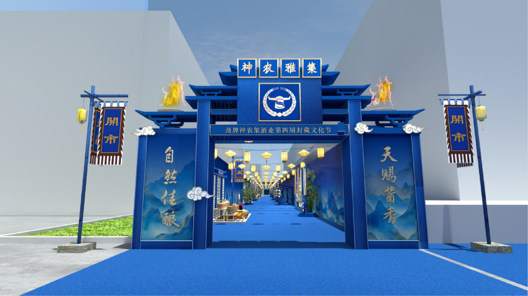 活動主KV以深邃的藍(lán)色為主色調(diào),靈感源自神農(nóng)架封藏酒的瓶身設(shè)計,象征著自然的純凈與深邃。畫面中,金色書法字體“自然佳釀,天賜醬香”躍然其上,傳遞出傳統(tǒng)釀造文化的厚重感與優(yōu)雅氣質(zhì)。背景中,神農(nóng)架的山水剪影若隱若現(xiàn),勾勒出這片神秘土地的自然之美,仿佛邀請嘉賓探尋神農(nóng)架的秘境,感受天地饋贈的醇香。整體設(shè)計將自然、文化與匠心完美融合,彰顯神農(nóng)架醬酒“自然釀造,天賜醬香”的品牌理念,吸引嘉賓沉浸于這場文化與自然交織的盛宴。