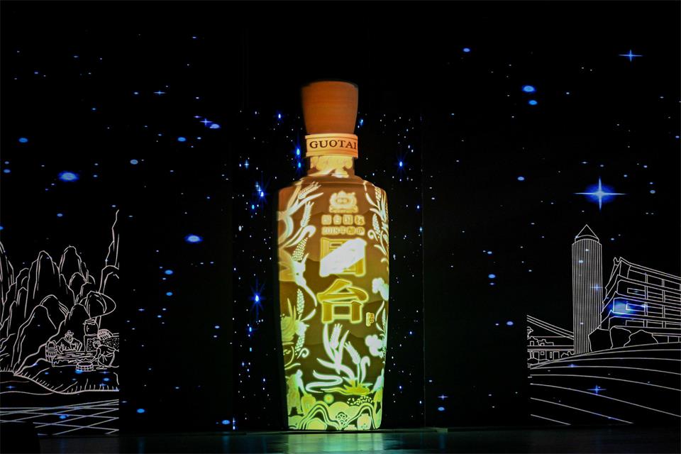 拓源為本次活動的舞蹈表演、啟動儀式等創(chuàng)作了不同的動態(tài)視頻,帶來豐富的視覺效果。聲光電、全息投影技術(shù)結(jié)合開合屏的運(yùn)用,實現(xiàn)了巨型全息酒瓶的震撼開場。動感的畫面帶來感官的刺激,屏幕緩緩打開,巨型酒瓶出現(xiàn),逐漸變換成國臺國標(biāo)酒瓶的形狀,牢牢抓住了現(xiàn)場來賓的視線。