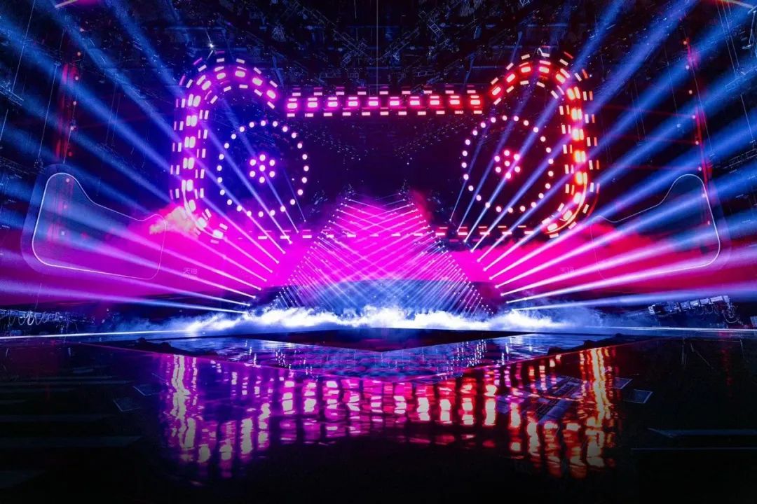 舞臺以一個巨型X造型為地臺,承載著四座移動大樓,在設計上摒棄以往傳統(tǒng)的舞美方案,做出大膽的嘗試,使四座大樓沿著地臺軌道移動最終合并成一個巨型魔方的概念。舞臺正后方,便是此次的天貓官方直播間。貓頭形狀的直播間外圍布置了多層爆閃燈。利用光束和蜂眼,分別設計了可升降的貓頭形狀的三合一光束燈架和兩個貓眼結構的led搖頭燈。讓天貓可以在一定程度上靈動起來。