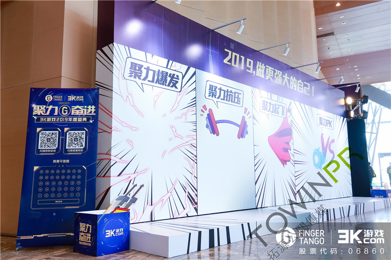 2019年1月22日,主題為“聚力奮進”的3K游戲2019年度盛典在廣州朗豪酒店圓滿舉行。7小時的搭建時間,現(xiàn)場從無到有,拓源公關(guān)的小伙伴們準時按照既定目標完成。現(xiàn)場的所有元素都是取材于3K游戲的風格及人物,濃厚的二次元風格令在場的所有嘉賓仿佛置身于二次元世界,