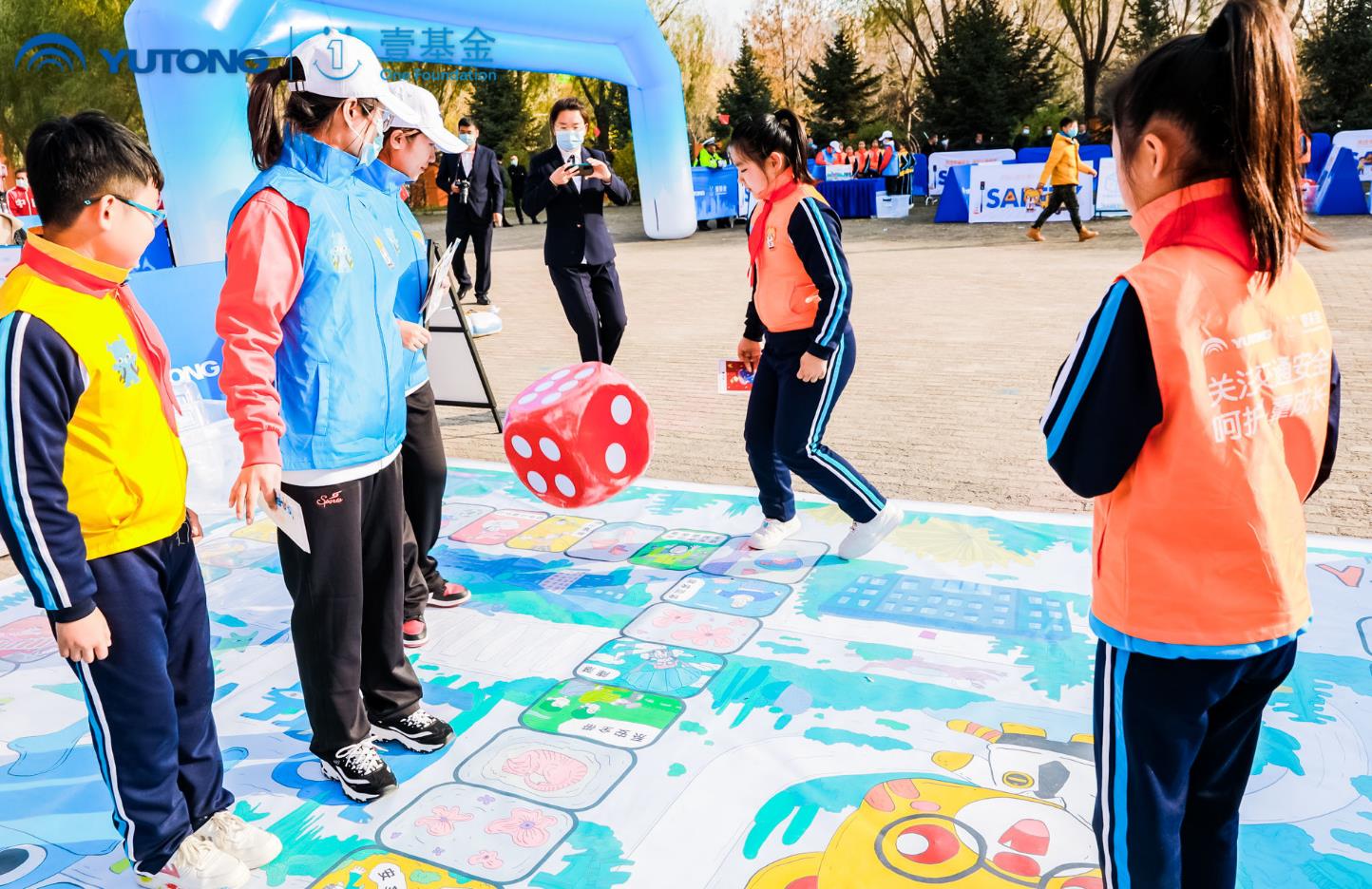 活動現(xiàn)場,孩子們通過游戲互動的方式,學(xué)習(xí)到許多交通知識,比如交通安全出行棋、安全頭盔接力賽、認(rèn)識大貨車的內(nèi)輪差以及真實(shí)校車的安全演練等。每個(gè)游戲都十分精彩,且又能讓孩子們學(xué)到知識,保護(hù)自己。