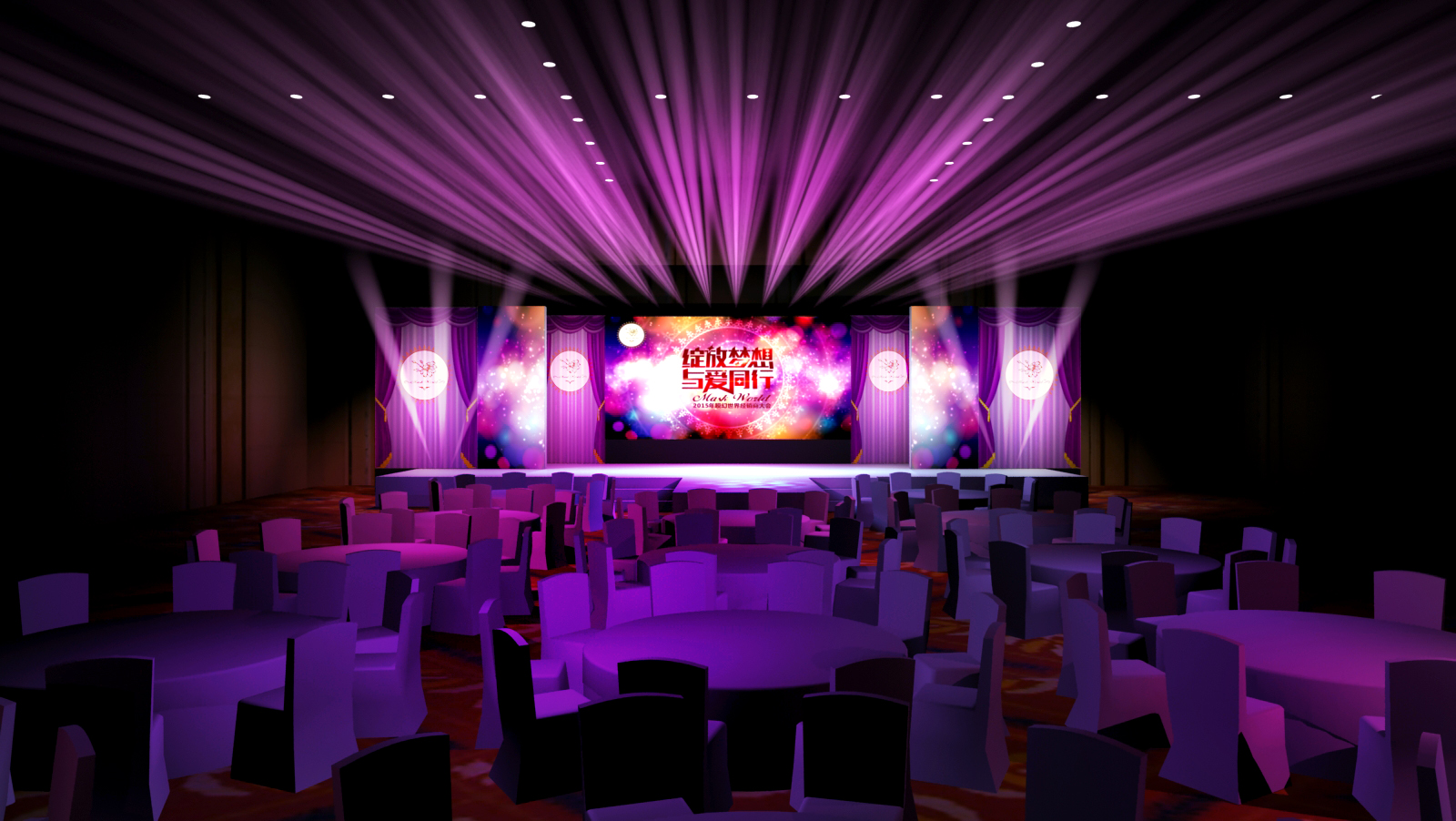 舞臺(tái)的閃亮之處不僅是呈現(xiàn)活動(dòng)的主題,而是調(diào)動(dòng)全場(chǎng)的氣氛,成為全場(chǎng)視覺的焦點(diǎn)。所以,每一個(gè)炫麗的舞臺(tái)都是為活動(dòng)的核心而變得富有魅力別具一格!