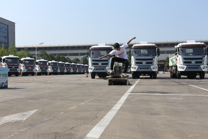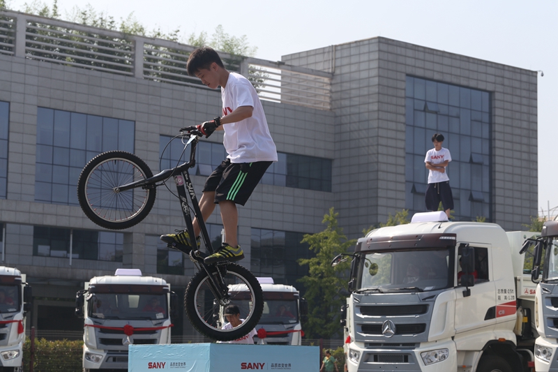 現(xiàn)場(chǎng)還有讓人驚心動(dòng)魄的一幕,“玩酷”表演表演結(jié)束之后;緊接著就是在擺滿障礙物的表演場(chǎng)地上,幾輛三一自卸車(chē)一起表演了正向繞樁、倒車(chē)?yán)@樁、對(duì)開(kāi)繞樁,以輕巧靈活的動(dòng)作,完美展現(xiàn)了設(shè)備的操作性和穩(wěn)定性;