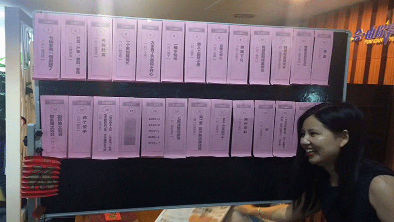 9月14日下午四點整,公司小伙伴齊聚會客廳。美女HR早已準備好了猜燈謎的小黑板。