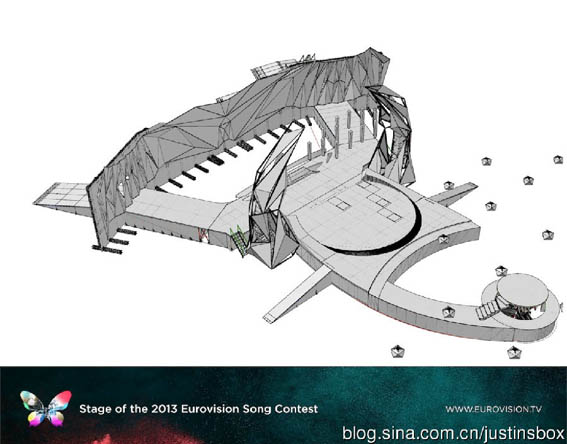 圖4 2013年歐洲歌唱大賽的舞臺(tái)造型(舞臺(tái)后鉆石紋路背景板可用來投影)