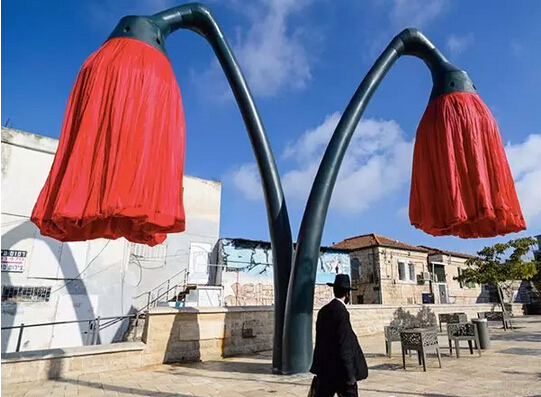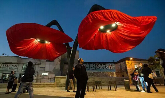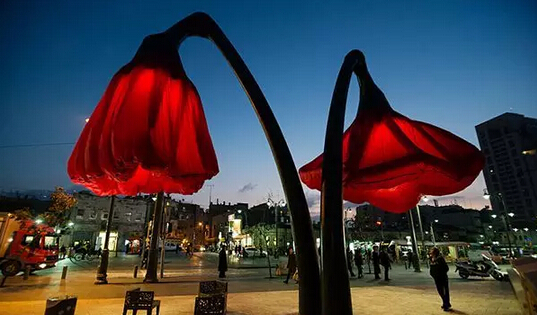 Warde 位于耶路撒冷市中心的 Vallero 廣場(chǎng)上,是 HQ Architects 公司的作品,為了規(guī)整城市空間,讓 Vallero 廣場(chǎng)(周?chē)抢幚韽S(chǎng)和發(fā)電廠(chǎng))與其他的區(qū)域劃分開(kāi)來(lái),他們樹(shù)立了四朵巨型可充氣花燈,同時(shí)也為耶路撒冷這座城市添置一個(gè)戶(hù)外景觀(guān)。